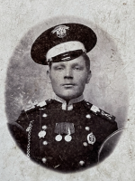 Старший унтер-офицер 15-го гренадерского Тифлисского полка. Медали в память Отечественной войны 1812-го (1912 г) и 300-летия дома Романовых (1913 г.). Два знака - полковой и "за отличную стрельбу".