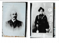 Верцберг Герш Лейб Иоселевич (Григорий Осипович) и Двейра (Двойра) Рувиновна (в девичие Рот). фотографы: Р.Я. Бик Екатеринославль., Лехницкий К. Полтава. Фотограф из Белгорода неразборчиво (оригинала фото нет)