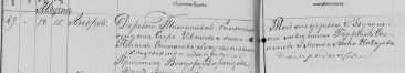 Запись о рождении Даниила, 15 декабря 1883 года. Родители - деревни Тимашево (??) солдат Максим Гавриилов и жена его Мария Григорьева. Восприемники - той же деревни мещанин Африкан Димитриев и Евдокия Гавриилова