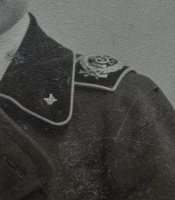 Разобрались, что на лацкане линейка и циркуль, вероятно землемерное училице. Первой буквы на контрпогоне не видно, поэтому, вероятно, училище не получится определить.