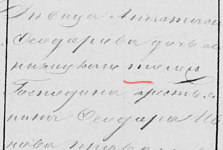 Что ж, выходит Татьяна их первенец, не умерла, что редкость для первенецев среди крестьян в те годы. Непонятно что за слово в отношении деда Татьяны по матери - он является кем-то в отношении Господина (владельца) села Никитского, т.е. видимо из дворовых. Надо посмотреть РС 1858 по Никитскому.