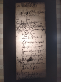 Добрый вечер 2й сверху Наум Перфильев сын Ясаков оклад ему двести пятдесят чети денег з городом десять рублев помесья за ним в Ряску … ево ... на государеве службе будет он на мерине ружья своего саадак да сабля