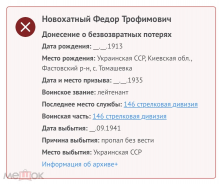 17 февраля 17:12 17 февраля 17:58 Встретилось на сайте Память Народа. Из надписи на первом листе : Убит на самолёте У2 в районе Дьяконово под Москвой 3.12.1941 г. при исполнении служебных обязанностей. ФИО неизвестно. Фотокарточки и документы убитого помощника начальника оперотделаОписывает период с 03.12.1941 по 03.12.1941 г. Прочие документы. Дата создания документа: 03.12.1941 г. Архив: ЦАМО, Фонд: 3465, Опись: 0000001, Дело: 0073, Лист начала документа в деле: 136 Описывает боевую операцию: нет данных https://pamyat-naroda.ru/docum...::page%5C2 Другие документы в деле 73 https://pamyat-naroda.ru/docum...vki:drugieРазглядела на карте запись.Это майор Чумак. Чумак Анисим Иванович Год рождения: __.__.1902 https://pamyat-naroda.ru/heroe...s%3D1&Чумак Анисим Иванович Дата рождения __.__.1902 Место рождения Запорожская обл., Лукашевский р-н, с. Михайлово-Лукашево Воинское звание майор https://pamyat-naroda.ru/heroe...s%3D1&Из интернета: Его внучка ищет место захоронения Елена Крамарова 15 апр 2024 в 14:16 "Добрый день! Прошу оказать помощь в розыске мест захоронений моего родного дедушки Чумак А.И., родного брата моей бабушки Абрамова М.Е. и моего дяди Шевченко В.Е. Чумак Анисим Иванович (02.02.1902-03.12.1941). Место рождения: Запорожская обл., Лукашевский р-н, с. Михайло-Лукашево. Кадровый военный, кавалерист, ушёл в армию в 1918 г. Чумак 3 декабря 1941 г. на самолёте У-2 должен был перелететь линию фронта, что говорит о немалой опасности работы офицера связи и о большом опыте и смелости Анисима Ивановича. У-2 взлетел из района Лужники-Белопесоцкое, при возвращении самолёт был обстрелян немцами, Анисим Иванович был смертельно ранен. Самолёт сел в районе села Дьяконово Веневского района Тульской области. Летчик привез его мёртвым, но с донесением от штаба 9 ТБр и полной обстановкой. На карте, которая была в офицерском планшете Чумака, рукой генерала Белова написано: “Карта убитого офицера связи майора Чумак. Убит на боевом посту. Умер за Родину. 3.12.41. 17.20. Белов” (красным карандашом), “Беречь как историч. документ штаба 1 гкк. Это будет память герою. 3.12.41. Белов” (синим карандашом). Дата подвига: в донесении 1 гв. КК указана дата гибели 04.12.1941 г., а в наградном листе – 03.12.1941 г. Представлен к награждению Орденом Ленина. Приказом Военного Совета Западного фронта № 426 от 22.12.1941 г. был награжден орденом Красного Знамени. Награду Анисима Ивановича – удостоверение к Ордену Красного Знамени – в феврале 2021 г. получила его внучка..." https://vk.com/topic-203767806...6801697159