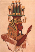 Древнеегипетская цивилизация оставила нам галерею портретов женщин, которые когда-то носили титулы "Владычица Верхнего и Нижнего Египта", "Супруга бога", "Украшение царя". Царица в древнем Египте являлась земным воплощением сладостной богини Хатхор, дочери солнечного божества, супруги-матери Хора, одной из важнейших сил, которыми движима вселенная. "Великая Cупруга царская" не только персонифицировала собой божество, но и использовала на благо космоса силы предвечной богини матери, вызванные ее участием в храмовых ритуалах; кроме того, рождая наследника престола, она поддерживала династическую преемственность царской власти и воплощала в себе вневременные идеалы красоты, благочестия и царственности. Царица как воплощение дочери Солнца могла быть воплощением и других богинь, связанных общей концепцией Ока Ра. Так, несомненна связь царицы и великой Маат; подобно тому как вселенская гармония является постоянной спутницей царя, так и его супруга символизирует своим присутствием неизменный союз фараона и Истины, с которой советуется сердце царя. Титулом Супруга бога обладала и одна из самых интересных личностей первой половины Нового царства - царица Мааткара Хатшепсут, "первая среди знатных, воссоединяющаяся с Амоном". Дочь фараона Тутмоса I и супруга Тутмоса II, Хатшепсут рано овдовела и, сначала являясь регентом при наследнике престола - будущем Тутмосе III,- вскоре взяла власть в свои руки. Единолично царствовавшая в Египте 22 года, Хатшепсут опиралась в своих действиях на жречество Амона. Она продолжила грандиозную строительную программу своего отца Тутмоса I. Хапусенеб, "начальник всех работ царя" царицы, лично руководил перестройкой и расширением Карнака, создавая новый храм, называвшийся "Хатшепсут божественна в памятниках". Из красного песчаника было сооружено новое святилище для ладьи бога, известное сегодня как "Красная капелла" Хатшепсут. По приказу царицы была убрана часть колонн гипостильного зала ее отца, а на их месте под руководством фаворита царицы, великого архитектора Сененмута, воздвигнуты два обелиска из красного асуанского гранита, высотой 32 метра каждый. Обелисками, к сожалению не сохранившимися, царица украсила также и дополнительное колоссальное алебастровое святилище, посвященное восходящему солнцу и примыкавшее к храму Амона с востока. Рельефами, иллюстрирующими доставку на огромных кораблях и установку гигантских обелисков в храме, Хатшепсут повелела украсить стены "Красной капеллы" и заупокойного храма в Дейр эль-Бахри. Гранитные колоссы были покрыты золотом и электрумом.