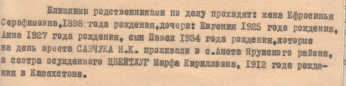 Изучая дело и воспоминания родственников понял, что: -село Шитня снесли, жителей переселили; -сестра как родная в селе Шитня, так и двоюродная в м. Корец были замужем за поляками; -сестра оказалась в Казахстане (как я понял было переселение в эту страну как возможность меньше контактировать с Польшей); -сам прадед приписан к польским шпионам.