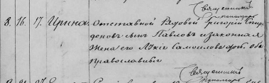 Наречение тем же самым именем через одну запись, это же вам наоборот, прямое подтверждение в имени той же самой святой, чья память чтилась те дни согласно местному требнику - и на запись выше. Ирина - в обоих случаях. Безальтернативно. --- Москов. г., Богородский у.: Титово, Понарино, Заполицы, Богородское, Степановка, Мисцево