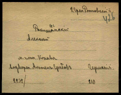 И карточка, предположительно тоже на него, т.к. подозреваю, что записан он был на немецком, как Alex и в дальнейшем записали Александром, потому что других Александров с похожей фамилией в данном полку я не обнаружил.