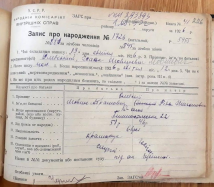 25 октября 2021 15:10 Добрый День! Архивная запись о рождении в г. Днепропетровске от 1926 г. Ни кто не поможет в расшифровке документа? Интересует профессия отца и место их жительство.