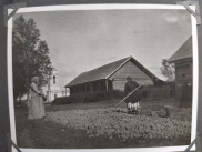 Я думаю, что это дом, может быть флигель. При осветлении и изменении контраста проступают окна, возможно дверь. Хорошо бы сделать более лучший скан, а не не фото. + тот факт, что рядом церковь. Скотный двор, рига, сарай, амбар - вряд ли разместят рядом с церковью. Забор и кустарник тоже больше говорит, о том, что постройка не хозяйственного назначения